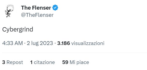 Whatever will be of cybergrind after 2023 is up in the air. Let’s hope it stays weird. Let’s hope it does not crystalize in some stable, predictable form. Keep on cybergrinding, you freaks.